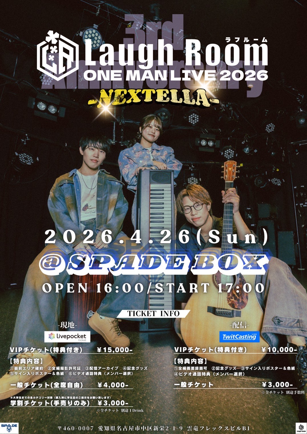 2026 4/26SPADE BOX ラフルーム / ONE MAN LIVE 2026 ~NEXTELLA~ 時間OPEN /16:00START /17:00 チケット 前売 一般 ¥4,000- [ドリンク代別途¥600必要] 問合せ SPADE BOX/052-212-9028詳しくはこちら Post 記事のタイトルとURLをコピーする スケジュール一覧 2026年4月26日 2026 4/26HeartLand gibkiy gibkiy gibkiy / 10th ANNIVERSARY gibkiy gibkiy gibkiy 10th ANNIVERSARYavantgarde,barbarian “消化”入場特典:未発表音源無料配布※名古屋限定デザイン詳しくはこちらOPEN/17:30START/18:00