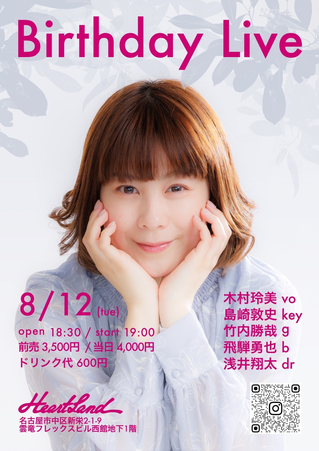 2025 8/12HeartLand 木村玲美 / Birthday live at HeartLand 時間OPEN/18:30START/19:00 チケット 前売¥3,500- [ドリンク代別途¥600必要] 問合せ HeartLand/052-212-9018詳しくはコチラ Post 記事のタイトルとURLをコピーする スケジュール一覧