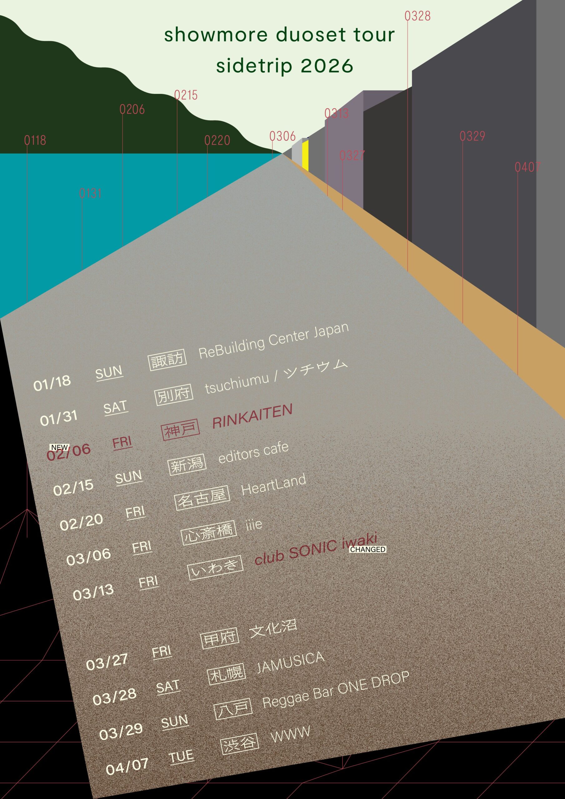 2026 2/20HeartLand showmore 時間OPEN/18:30START/19ː00 チケット 小学生以下 :無料 チケット 中・高校生 :¥2,000 チケット 一般 :¥4,000 問い合わせ HeartLand/052-212-9018詳しくはこちら Post 記事のタイトルとURLをコピーする スケジュール一覧 2026年2月20日 2026 2/20HeartLand Neontetra presents「音の水族館」vol.48 Neontetra presents「音の水族館」vol.48 「Neontetraワンマン応援企画 冬まつり2026」【出演者】小野亜里沙/長谷川まい/はるのまい/NeontetraOPEN / 18:20START / 18:50